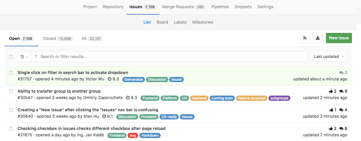 The GitLab Issue Tracker is an advanced and complete tool for tracking the evolution of a new idea or the process of solving a problem.